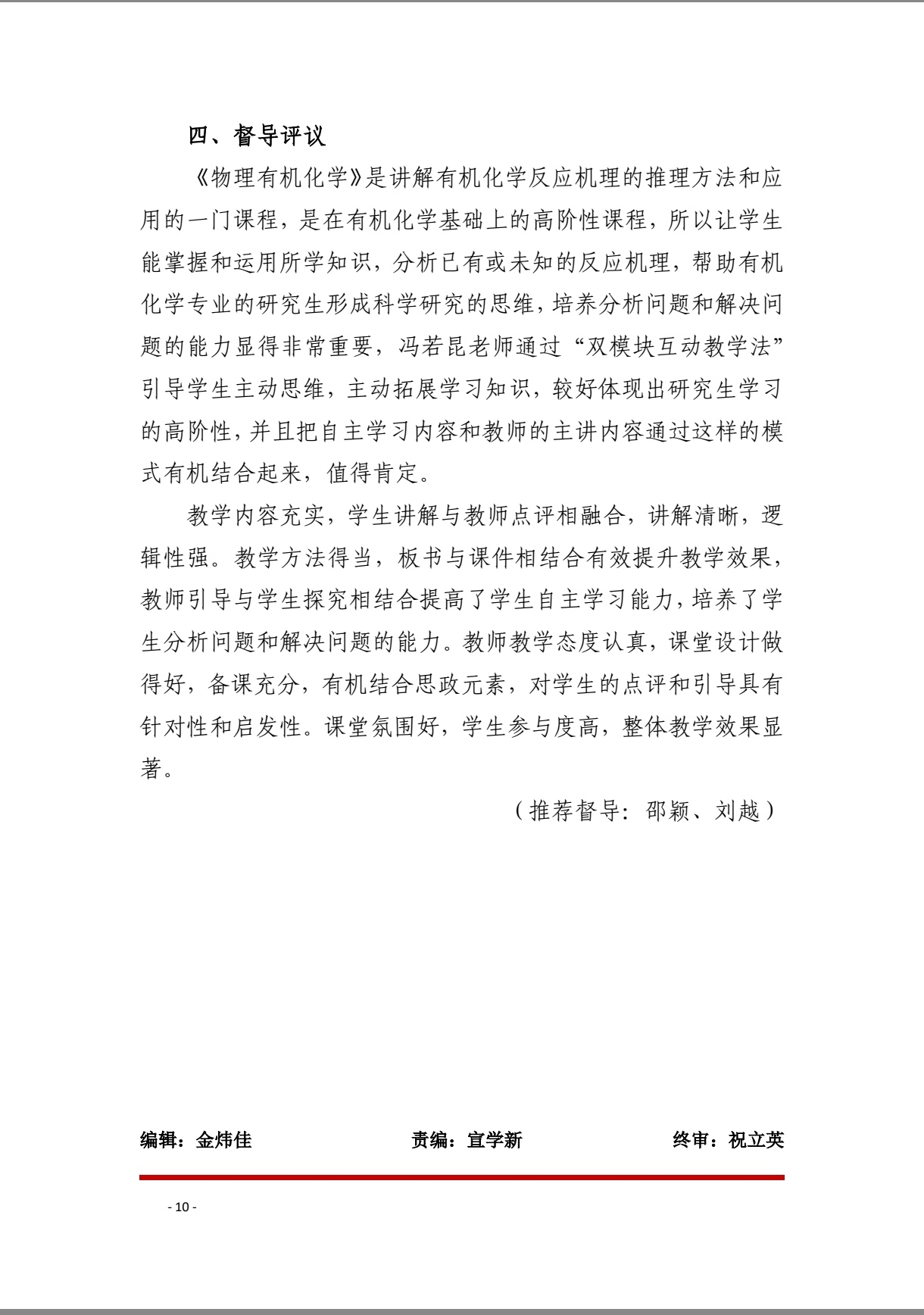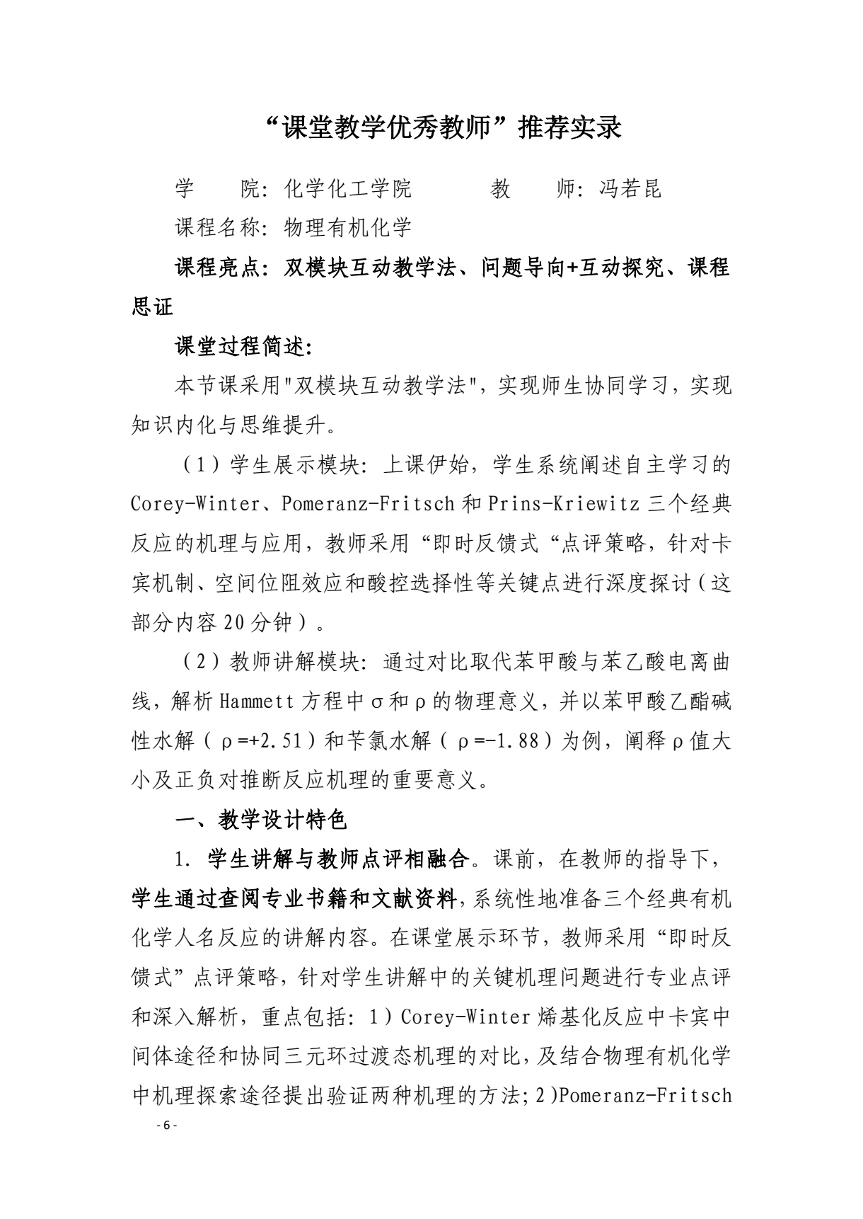 “课堂教学优秀教师”推荐实录