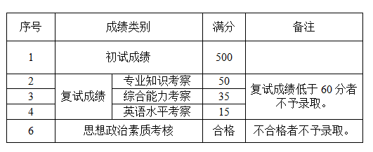 2.3思想品德考核:侧重于考核考生思想政治素质和道德品德、事业心、责任感、纪律性等情况,不计入复试成绩,其成绩计为合格与不合格。