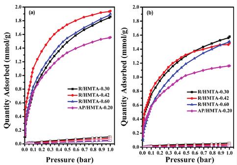 规则多孔有机聚合物材料是最近几年的材料科学研究热点,广泛应用于多相催化、选择性吸附、分离等领域,其合成主要是在水或有机溶剂存在条件下,通过嵌段共聚物模板剂与聚合物前驱体之间的自组装来制备。大量溶剂的使用使得材料的合成成本大大增加,合成产生大量的废弃物,有毒、有害组分。针对上述科学问题,该研究巧妙地设计出新颖无溶剂固相合成技术,直接利用嵌段共聚物模板与氨基苯酚、六次甲基四胺小分子实现自组装来构筑规则介孔结构,实现了高度规则、稳定的氮掺杂规则多孔有机聚合物材料的快速制备。丰富规则的介孔结构及高度的氮掺杂骨架,使得该材料对二氧化碳显示出优异的吸附性能(0.67-0.91 mmol/g, 25°C, 0.15 bar),以及较高的选择性(IAST选择性205,25°C)。吸附的二氧化碳可以在温和条件下被快速催化转化成高附加值的精细化学品。该方法对于实现多规则介孔聚合物材料绿色、低成本制备,并应用于二氧化碳的高效选择性捕获、催化转化具有一定的理论研究意义。以上研究得到国家自然科学基金、浙江省自然科学基金等资助。