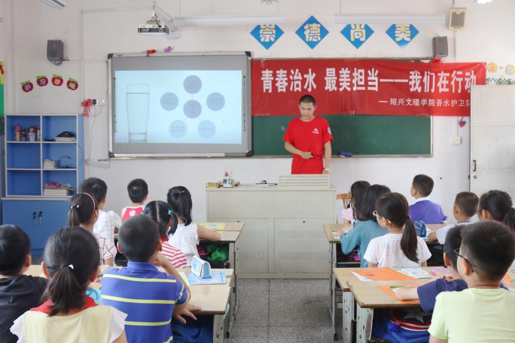 学生党员勇于担当,为深入学习贯彻浙江省高校思想政治工作会议和浙江省剿灭劣Ⅴ类水工作会议精神,以高度的责任感和使命感积极发挥学生党员学科专业优势投身“五水共治”,在剿灭劣V类水这一关乎城市形象大事上亮出青春的担当,开展“青春治水,最美担当”暑期社会实践活动。本次暑期实践活动学生党员从三个篇章开展:首先是“青春•宣讲”——青春飞扬,宣吾所知。结合“两学一做”学习教育常态化制度化,把思想教育作为首要任务,在树人小学、北海街道以及治水广场等地,以“五水共治——节约水资源”知识为主进行宣讲。同时,也积极响应浙江省第十四次党代会精神,建设美丽浙江,提升全民治理污水的意识,宣扬“五水共治”的思想。其次,“青春•巡河”——环河骑行,考察水质。实地考察学校周边及绍兴市区的水质,开展绍兴部分地区水质监测调研。此外还开展了剿灭V类水环保骑行活动,呼吁大家共治污水,热爱环境,节能减排,争做最美担当。最后,“青春•调研”——调研水质,尽吾所能。设计和发放调查问卷,并且进行了街头采访和乡村晚会。“保护水资源或许并不需要我们轰轰烈烈地干一番大事,只需要我们从身边的点点滴滴做起。我希望通过今天能让小朋友们感受到水资源是人类共同的财富,提高他们对水资源的认识,自觉养成节约用水的好习惯,让它们得到充分利用。”团队成员章昱松说。“五水共治”、“剿灭劣V类水”不仅仅是一个口号,也不应该只停留在理论的层面,结合绍兴市第八次党代会精神,以持之以恒、锲而不舍的恒心和毅力,坚持创新与实践并重,自觉与责任同行。聚力“五水共治”,向一切污泥浊水宣战,共护青山绿水,共创宜居家园!