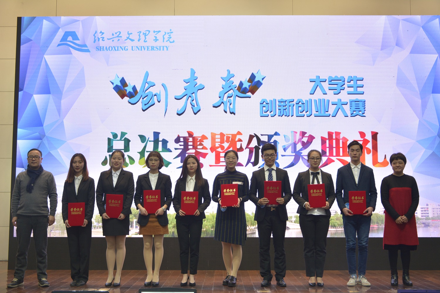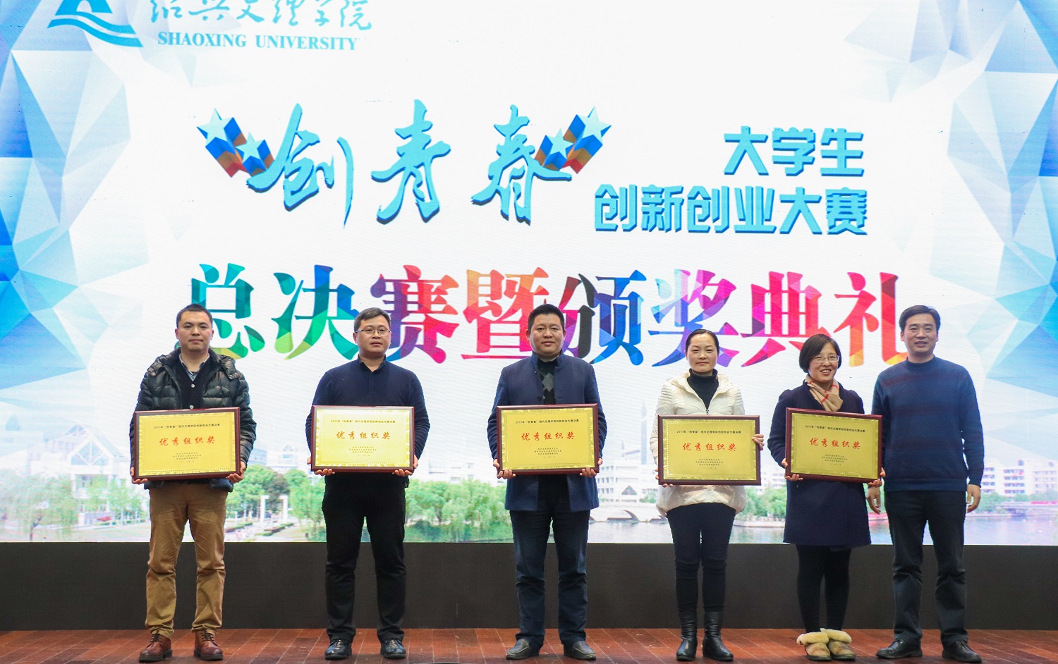 2017年“创青春”大学生创新创业大赛总决赛在铁城科教馆举行。大赛由党委学工部、校团委、人文社科处、教务处、科技处和研究生处联合主办。市人社局副局长罗继红,团市委副书记王晶,网络创业培训研究中心常务副主任、国家人社部网络创业培训项目技术专家聂兵,绍兴金德隆文化创意园董事长丁海土,我校学工部、教务处、资产经营公司负责人,各学院学生工作负责人、参赛选手及指导老师,受邀观众500余名参加活动。