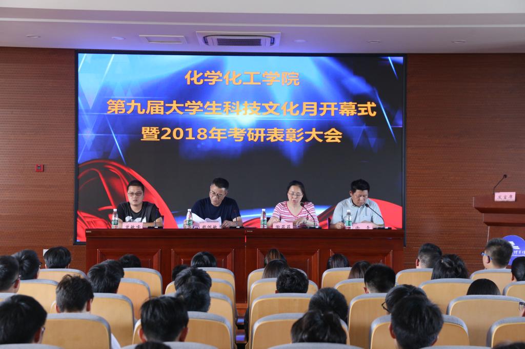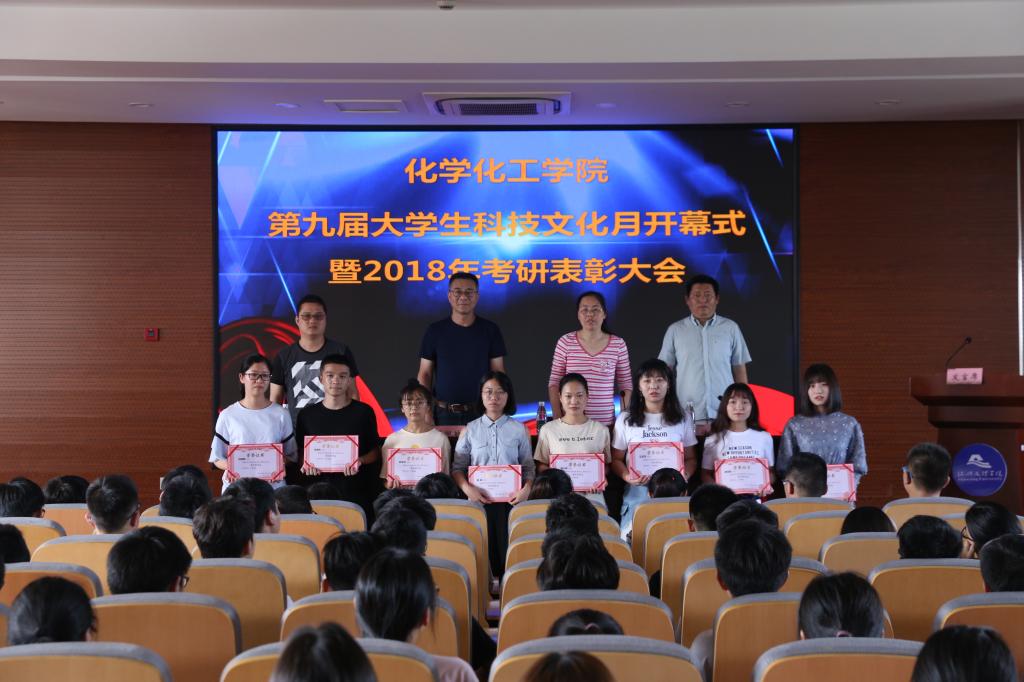 共有25名同学考取国内高校硕士研究生,录取人数在全校各学院位居前列。大学生科技文化月活动的开展既展现了学生的各级各类科研、考研成果,又成功地营造了良好的科研、学习文化氛围,培养了学生创新精神和实践能力,从而带动学院教风学风的整体提升。本届大学生科技文化月活动主题为“科技点燃创新之火,文化渲染青春激情”,将通过科研成果展、先进典型宣传、各类竞赛组织、科研创新论坛、考研表彰动员、学生科研讲坛、社会实践活动、传统文化主题教育、“化学在身边”系列主题团学等活动,进一步培养学生创新精神,增加学生对科学的热爱,提高学生实践和社会服务能力,让学生了解中国特色社会主义文化,提升民族自豪感和文化自信心。
