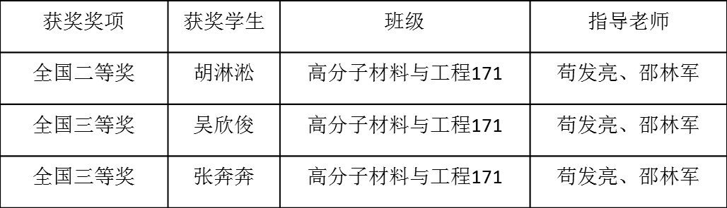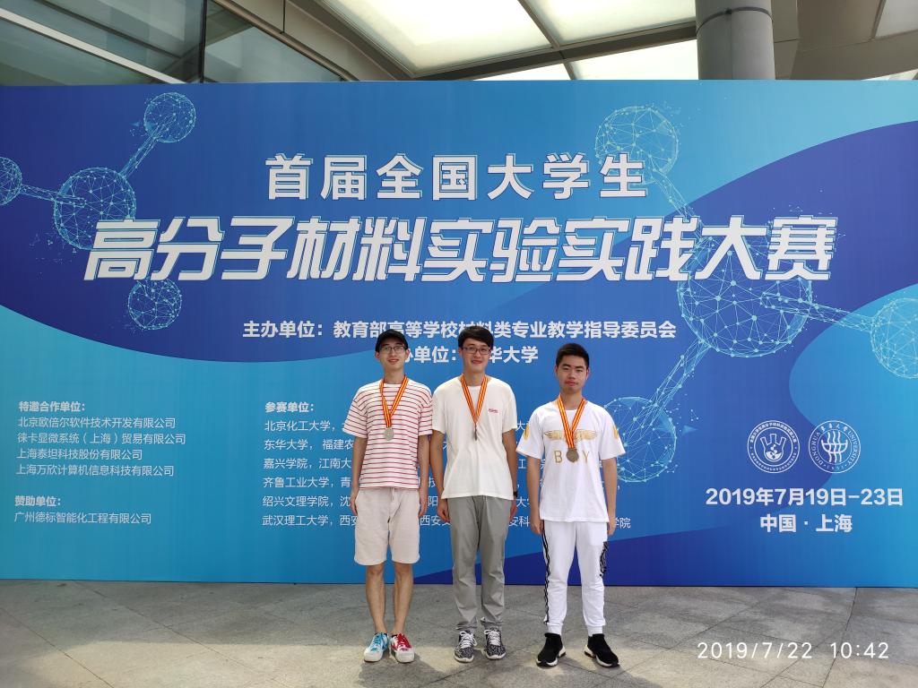 7月19-23日,由教育部高等学校材料类专业教学指导委员会主办的“首届全国大学生高分子材料实验实践大赛”在东华大学纤维材料改性国家重点实验室隆重举行。经过校级选拔,绅士漫画 2017级高分子材料与工程专业三位学生代表学校参加决赛,与四川大学、东华大学、西安交通大学、大连理工大学、华东理工大学等31所高校学生同台竞技,荣获二等奖一项,三等奖两项。