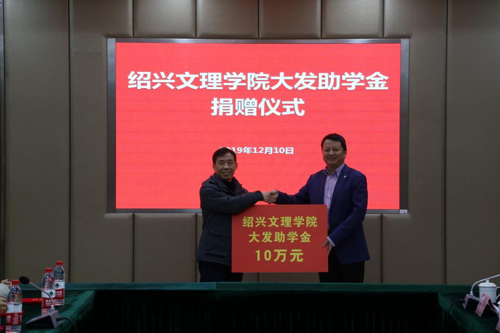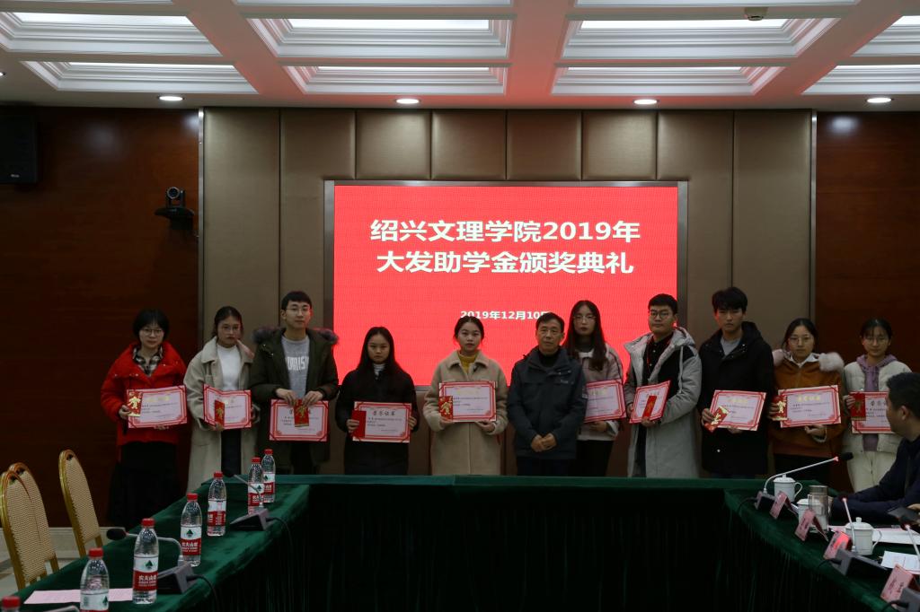 12月10日上午,2019年“大发助学金”颁奖典礼在铁城科教馆一楼会议室举行。校党委副书记沈赤,宁波大发化纤有限公司副总经理钱军先生,学工部、对外联络处、绅士漫画