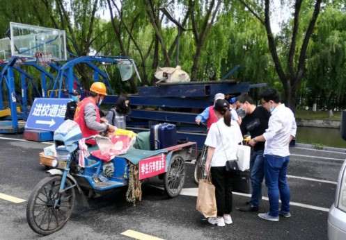 在河西校区报到现场,由学院领导班子成员、辅导员和专任教师等组成的突击队值班组,及时接待返校学生,为学生提供搬运行李和引导上车等服务。
