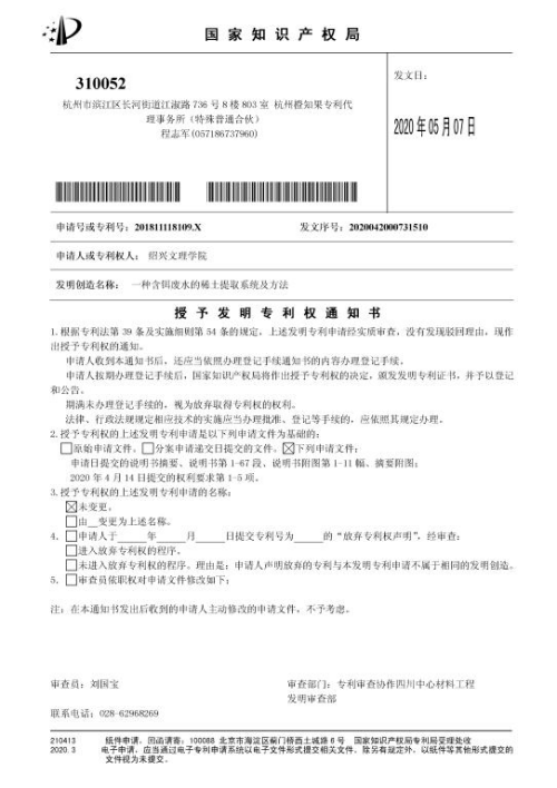 截至目前,已有32位同学被中科院、上海交大、浙大等知名院校录取,录取率和录取院校层次都有较好提升。开展就业创业政策宣传与服务举措,目前已有1名学生完成工商注册,2名学生正在申报办理中。化危为机,引导学生充分利用好线上资源,开展科学研究和创新创业,近期学院刚刚收到学生专利授权书,学院化学师范161班胡宁洋团队的发明专利申请获得授权,实现了学生发明专利授权零的突破。