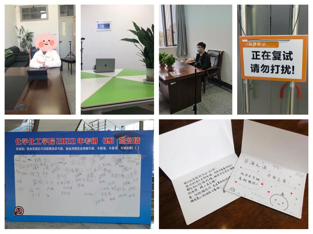 在复试调剂环节,精心布置6间线上复试场地,给予复试调剂同学暖心关怀和一对一指导。