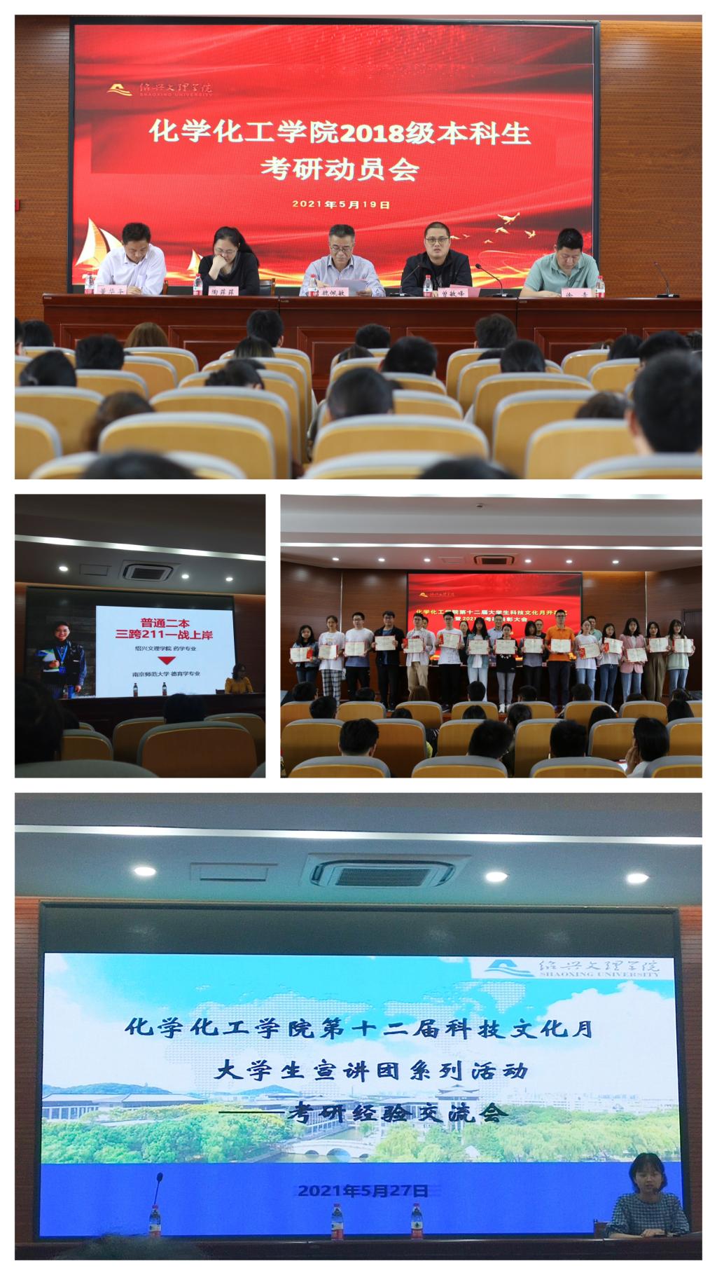 每学年组织一次考研宣传周活动,通过生涯规划、考研主题班会、考研经验交流会、考研论坛、考研讲座、考研动员会等,持续强化学生的考研意识,激发学生学习内动力。