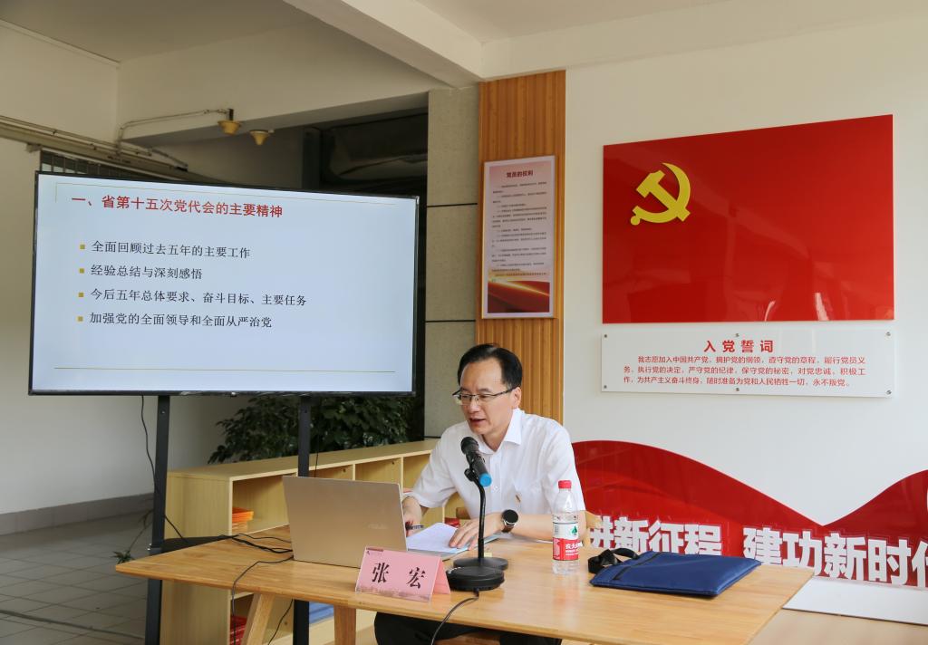 6月初,市委党史室在学院志廉楼二楼廊道设立了“红色书架”。6月28日,“红色书架”第一堂专题党课开讲了,学校党委副书记张宏为全院师生党员上了一堂“学党代会精神、促高质量发展”专题党课。张书记从“大会主题,过去五年的主要工作,推进习近平新时代中国特色社会主义思想在浙江生动实践五大战略指引、十一方面重要遵循,今后五年总体要求、奋斗目标、主要任务,加强党的全面领导和全面从严治党”等方面宣讲了省第十五次党代会精神。同时,就下一步学院高质量发展,张书记结合温州大学博士点成功建设的主要做法和经验,分析查摆了“化学一级学科”的主要差距和实际困难,并就下一步创新申博机制、强化师资队伍、培育标志性成果、创建国家级科研平台、突破重点(大)科研项目、提高师均科研经费、提升人才培养质量、强化政策保障等几个方面对学院提出了具体要求,要求进一步解放思想,更加科学地做好学位点顶层设计,更大格局地融合相近学科凝练特色优势,更大成效地激发各省重点平台、人才团队及各基层学术组织的积极性,力争把握住历史机遇,努力达成学校博士点成功突破。张书记最后强调,学院全体师生要以新时代奋斗者的姿态和干劲履好职尽好责,以共赢的理念走好“赶考之路”。