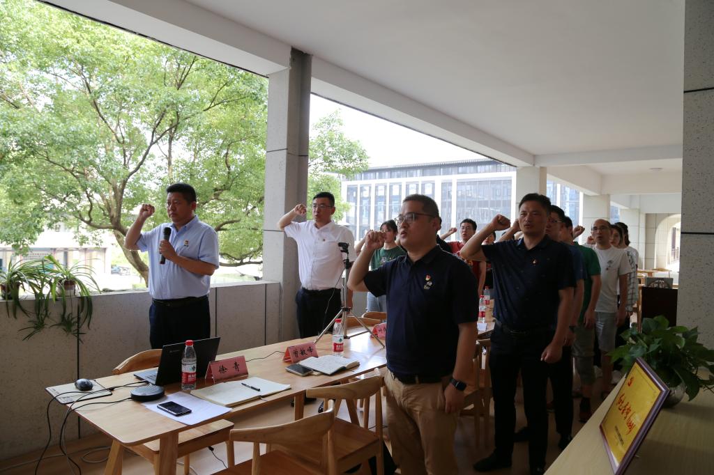 6月28日,学院党委副书记(主持工作)徐青领誓,2022年上半年新发展的党员面向党旗庄严宣誓,表达对党忠诚、永不叛党和愿意为共产主义事业奋斗终生的决心。在场的老党员也一同重温了入党誓词,牢记入党初心,筑牢信仰之基,强化使命担当。