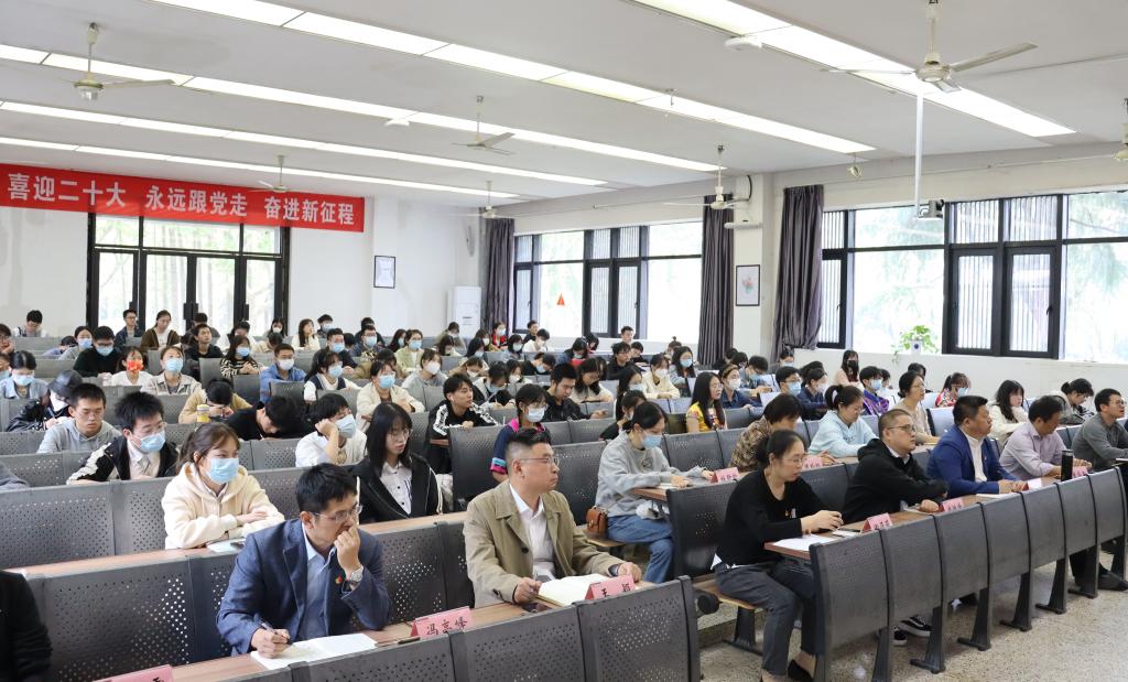 党委副书记(主持工作)徐青:党的二十大胜利召开,对中国乃至整个世界必将产生深远影响,聆听了习近平总书记的报告,既让我深受鼓舞,同时感到了责任和使命重大,我们要迅速掀起学习宣传贯彻党的二十大精神热潮,把学习宣传贯彻党的二十大精神与学院各项工作紧密结合起来。习近平总书记在报告中指出,“坚持为党育人、为国育才,全面提高人才自主培养质量,着力造就拔尖创新人才”。学院要以博士点创建为契机,全面贯彻党的教育方针,落实立德树人根本任务,加快内涵式发展,牢记使命、坚定信心、凝心聚力、踔厉奋发,为实现学院高质量发展、培养担当民族复兴大任的时代新人而不懈努力。