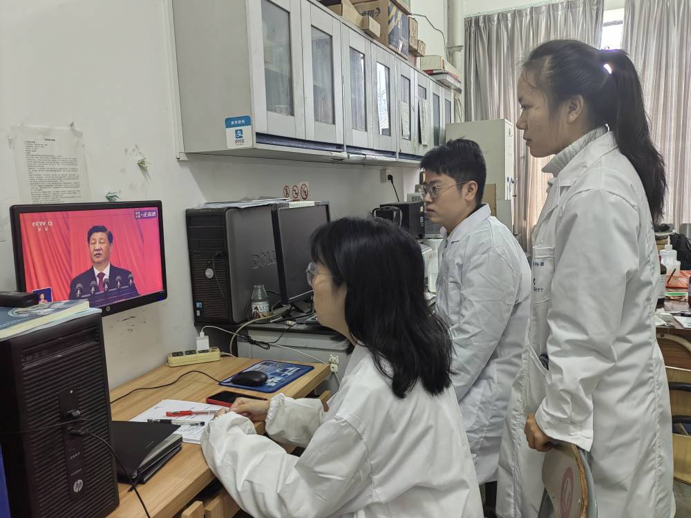 研究生团员青年在实验室收看开幕会