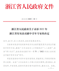 浙江省有突出贡献中青年专家,是由省政府授予的专家荣誉称号,每三年选拔一次,专门授予给在自然科学研究、高新技术等领域做出突出贡献,取得显著经济效益或社会效益的中青年专业人才。