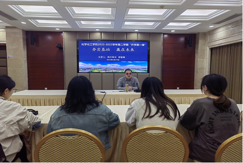曾敏峰围绕夯实基础 赢在未来为主题展开了化学专业思想教育,号召青年学子要学习习近平总书记的四个坚持,要跟随国家的战略导向和前沿导向发展,把握学校、学院博士点创建的有利契机,在新时代新征程展现新作为。