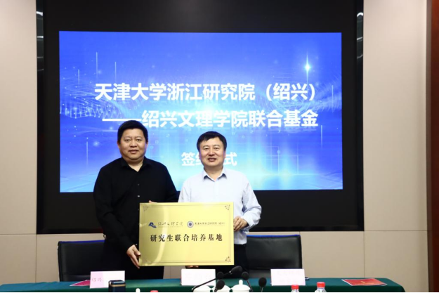 执行院长曾敏峰、党委书记徐青,校地方服务与合作处副处长姚博,天津大学浙江研究院(绍兴)院长乔建军、副院长党修湖、吕凤,仪器平台中心主任郭锦棠等人出席签约仪式。