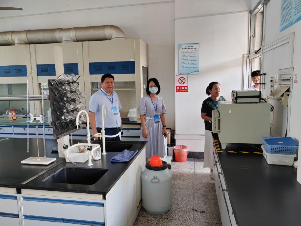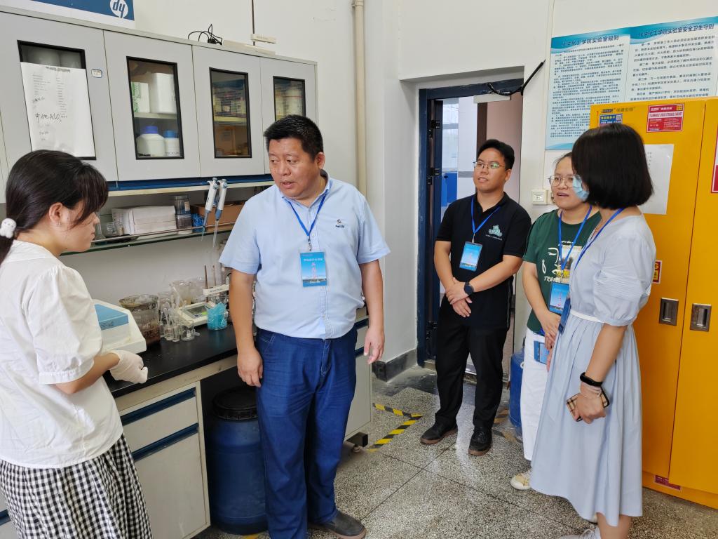 学院党委书记徐青带领安全检查小组成员走访检查学院科研及教学实验室,重点排查实验室化学用品存放及使用、废弃物处理、工作台账记录、卫生环境维护等情况,并就实验室管理及制度规范等内容与实验室人员作深入交流。