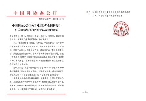 的“化”说科学趣味实验入选2023年全国科普日优秀活动。