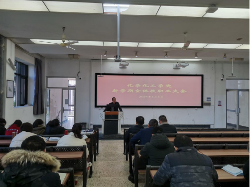 在理工楼134召开新学期全体教职工大会,传达学校干部大会暨作风建设大会精神、回顾学院2023年主要工作、通报寒假期间工作、部署2024年重点工作,学院党政领导班子成员及全体教职工参加了会议,会议由党委书记徐青主持。