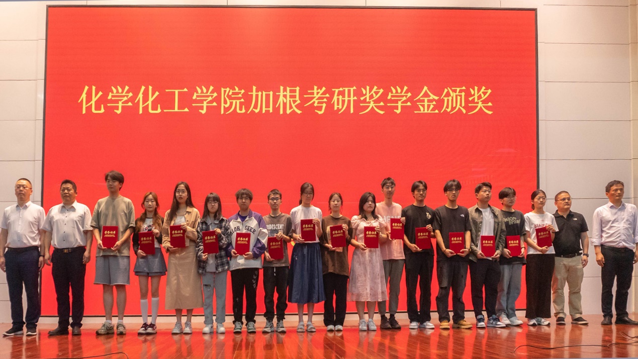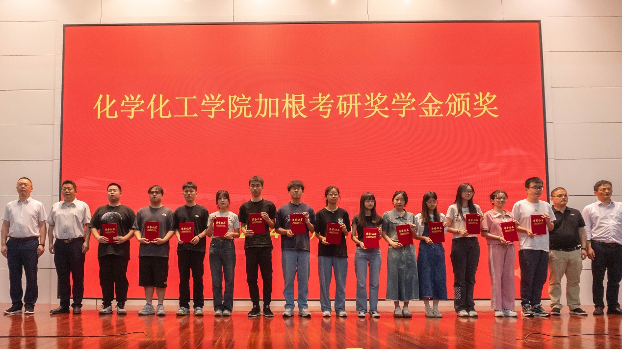 副院长董华平宣读《关于表彰2024年“加根考研奖学金”获得者的决定》,47位被中国科学院大学、四川大学、苏州大学等高校录取的硕士研究生上台接受表彰。