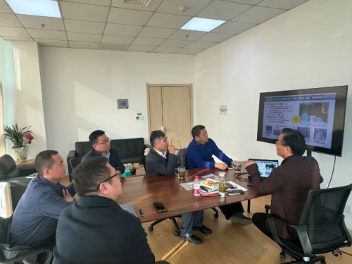 在上海大学绍兴研究院,徐青一行与研究院院长潘志浩、书记陈仲冬,北京卫蓝新能源科技股份有限公司董事长俞会根、浙江蓝珧新材料科技有限公司总经理祝军伟等开展深入交流。三方围绕全固态电池关键材料及核心技术等展开探讨,并就联合共建研究院、技术协同攻关、联合实验、人才共育等方面达成初步意见。