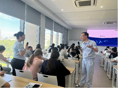 产业研学活动第一站,同学们来到浙江医药股份有限公司。公司浙江医药人力资源总经理马玉坤带领学生了解了浙江医药的发展历程,公司开发的众多药品,描绘了医药企业未来的发展方向。质量部黄丽君部长讲授了医药企业中关键的质量管理课程,结合企业案例介绍了药品研发、生产、技术转移等多个周期中产品质量的影响因素和管理办法。人力资源经理高静和生产主管叶峰等优秀校友与同学们进行了互动交流,并就同学们提出的关于课程学习、企业就业及要求等相关问题一一作了解答。
