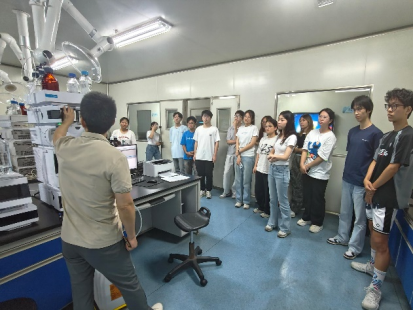 研学活动的第三站,同学们来到了绍兴市食品药品检验研究院。研究院谢浙裕副院长向学生介绍了食药研究院的发展历程,承担的食品、药品、医疗器械、化妆品等方面的质量检验工作内容。随后,谢浙裕副院长和胡建刚所长分别带队参观了食品和药品检测流程,介绍了气相色谱、高效液相色谱等常用分析仪器的基本原理和操作方法。学生还在研究院体验了药品、食品快检实验。研究院的研学让同学们实地接触到各种不同的分析仪器,充分体会到药品分析的高标准、严要求,为后续《药物分析》、《仪器分析》等专业课程学习打下了基础。
