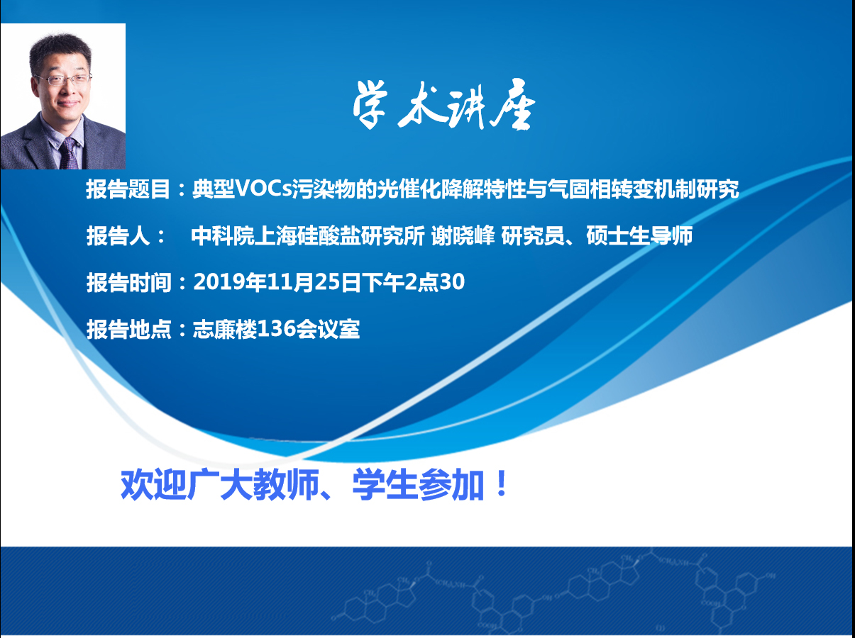 学术讲座:典型VOCs污染物的光催化降解特性与气固相转变机制研究