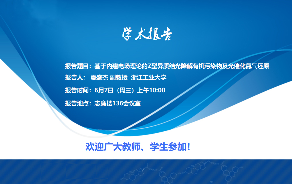 【学术报告】基于内建电场理论的Z型异质结光降解有机污染物及光催化氮气还原