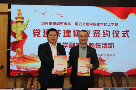 近日,化学化工学院党委与绍兴市快阁苑小学党建共建协议签约仪式暨科学副校长聘任活动在快阁苑小学报告厅内举行�