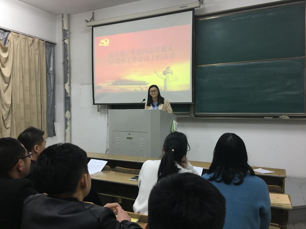 3�28日晚七点,研究生党支部在河西理工楼开展了学习宣传贯彻绍兴市第八次党代会精神的学习会。会议主要分为三个部分:一是学习夏宝龙、车俊同志在剿灭劣V类水工作会议上的讲话;二是学习彭佳学同志在全市“八大战役”动员大会上的讲话;三是学习彭佳学同志在市第八次党代会上的报告。会议由黄琎同志主持召开�