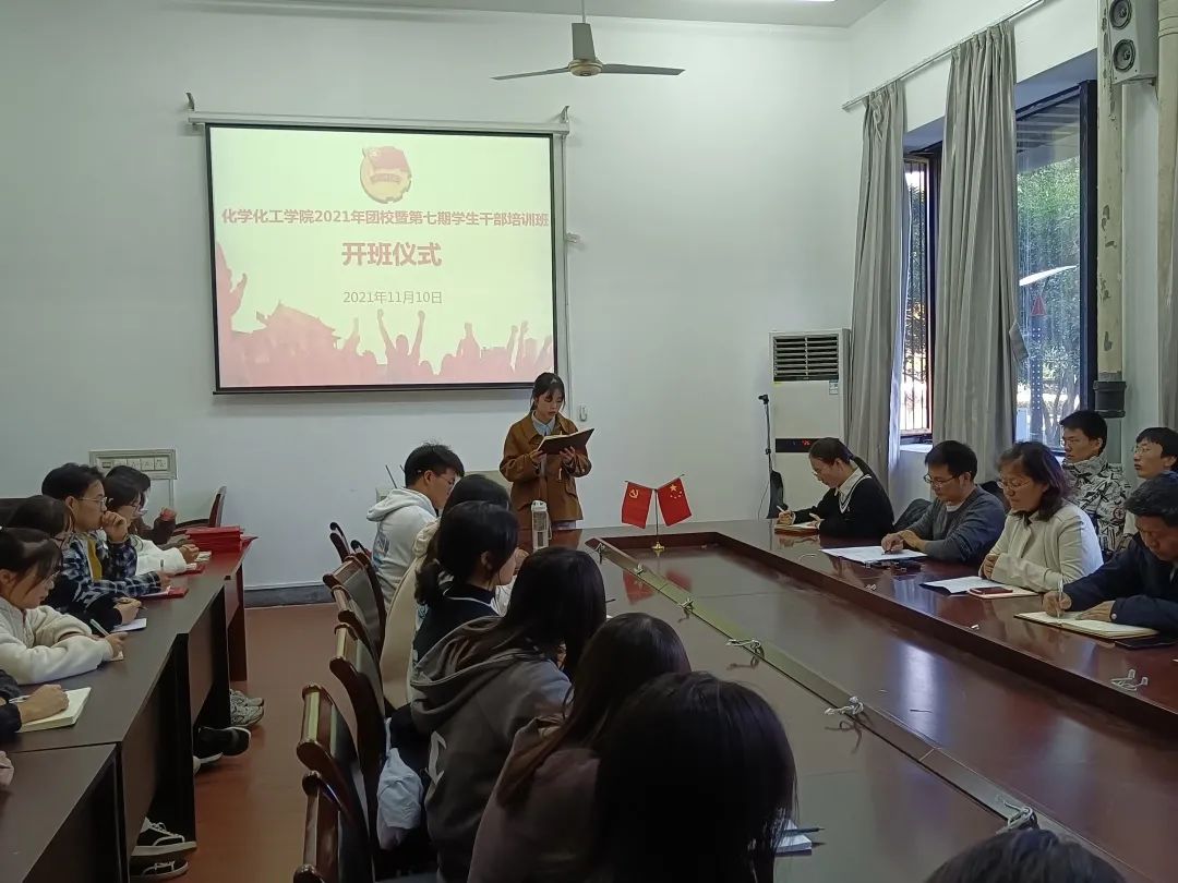 2021�11�10日,我院在志廉楼136会议室举�2021年团校暨第七期学生干部培训班开班仪式。学院党委副书记徐青,专职组织员俞兰芳,学生科科长章江燕,分团委书记韩超峰,研究生辅导员杜昕昀及全体团校学员参加开班仪式。开班仪式由韩老师主持�