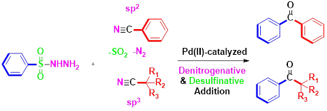 联芳基和芳炔基结构单元是各类复杂分子化合物的基础单元而且也是许多药效基团、天然产物、农用化学品等领域不可或缺的结构部分,制备此类化合物一直是人们关注的热点。传统的联芳基和芳炔基化合物合成方法是通过钯或镍催化亲电试剂(Ar-X, X =Cl,Br,I,OTf 等)与亲核试剂(Ar-M/ArC≡CH, M=B, Si, Sn等)两部分交叉偶联方式构建的,反应中往往也会引起许多副反应的发生,底物官能团受到一定的限制,因此开发其他亲电试剂和亲核试剂的绿色催化体系来合成联芳烃和芳炔烃化合物具有非常重要的意义。近期,绅士漫画