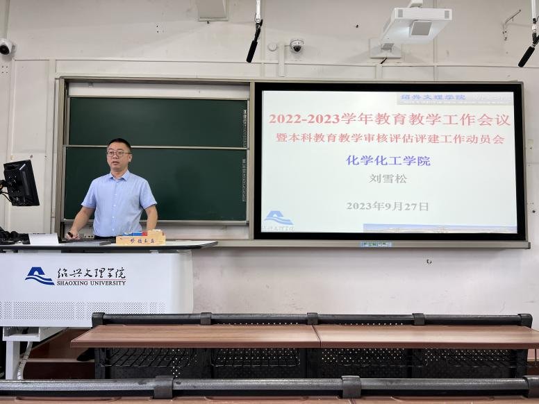 在理工楼324召开2023年教育教学工作会议暨本科教育教学审核评估评建工作动员会,学院执行院长曾敏峰、副院长董华平、刘雪松出席会议,学院全体教职工参加会议,党委书记徐青主持会议。