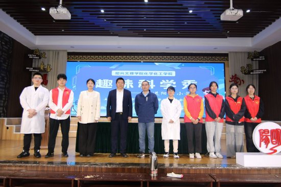 化学与新材料科普基地的科普团队前往绍兴市阳明小学开展趣味科学秀,为小学生打造了一场充满奇幻与惊喜的科学实验秀。